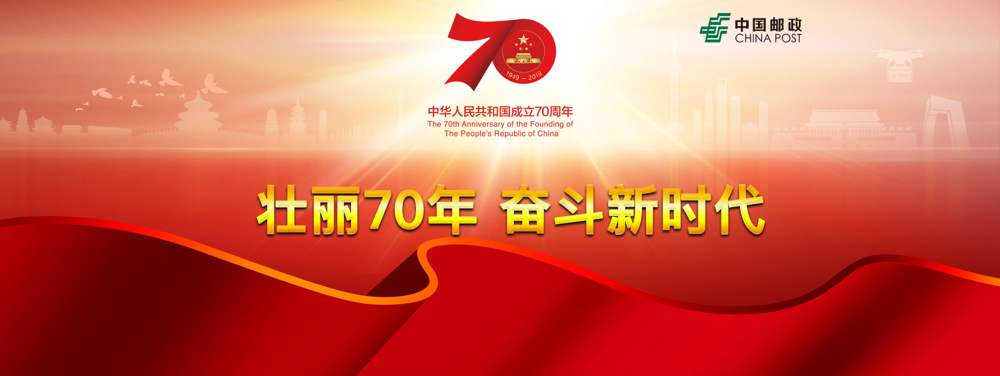 2019年,我們迎來了中華人民共和國70華誕。70年來,在中國共產黨的領導下,中國人民自力更生、艱苦奮斗,創造了舉世矚目的中國奇跡。70年來,中國郵政始終堅持黨的領導,秉承“人民郵政為人民”的服務宗旨,開拓創新,銳意進取,取得了輝煌的發展成就。
