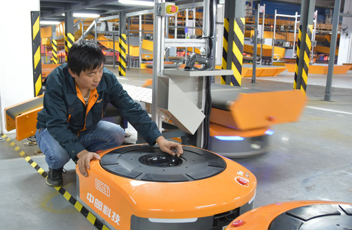 據了解,去年“雙11”,在300多臺分揀機器人的助力下,華中(武漢)陸路郵件處理中心單日最高郵件處理量達40.8萬件。為助力今年“雙11”生產、進一步提高處理效率,該中心繼續增添新生力量。自10月16日起,該中心進行增補機器人設備聯調,11月初新增的機器人具備全功能運行條件,將于11月11日正式運行。圖為中郵科技項目組工作人員在對新增機器人設備進行調試。  □蔣晨  攝影報道