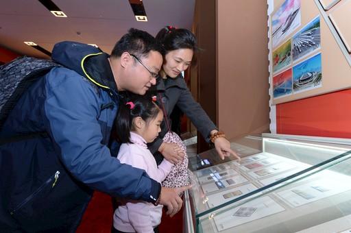 年輕的符浩并沒有過多關(guān)注展板,而是仔細(xì)地逐一觀賞展柜內(nèi)的郵票實物。“除了‘民族大團(tuán)結(jié)’,還有一套枚數(shù)相對較多的,《紅樓夢——金陵十二釵》郵票我已收藏;1997年《香港回歸祖國》的金箔小型張沒有收錄在年冊中,我買了很久都沒有買到;1999年《澳門回歸祖國》的金箔小型張年冊中就收錄了?!痹谵r(nóng)業(yè)銀行總行工作的符浩還有一個身份——長大的“小集郵愛好者”,他在福建省南平市紫云小學(xué)讀書時就接受了系統(tǒng)的集郵課程教育?!半m然因為求學(xué)、工作,有一段時間沒有接觸郵票了,但集郵教育對我影響很大?!狈迫匀粵]有忘記自己集郵的初心。