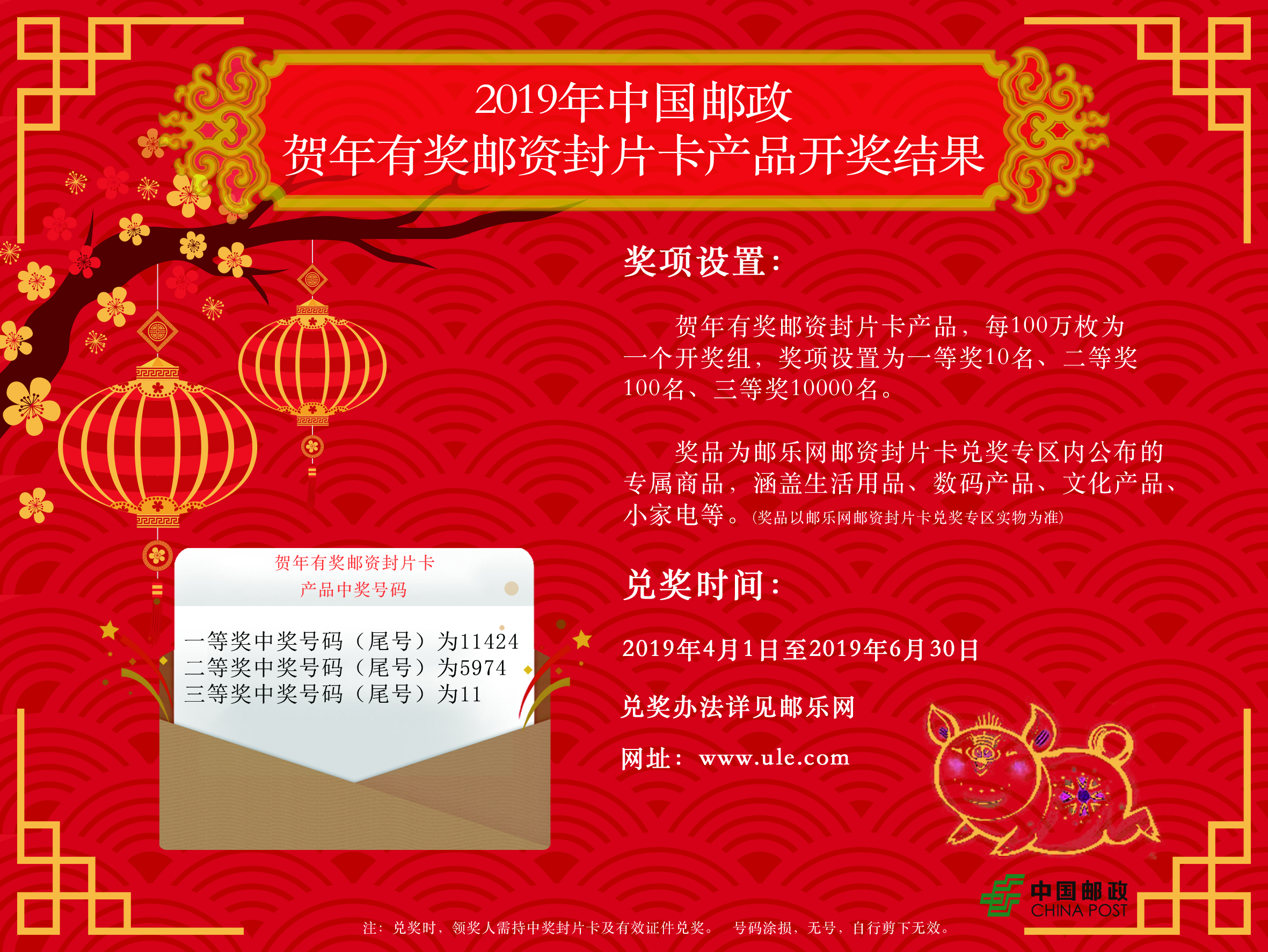 2019年中國郵政賀年有獎郵資封片卡產品開獎結果