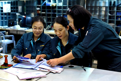 廣州郵區中心局江高中心目前有函件作業員工106人,其中,女員工占85%以上,每天人均一萬多封信件在她們指尖飛舞,她們不僅是技能尖兵,更有“手工藝人”的風范。