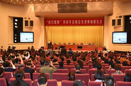 4月18日,中共中央宣傳部、交通運輸部、中共四川省委聯合在京舉行其美多吉先進事跡報告會,學習宣傳“時代楷模”其美多吉先進事跡和高尚品格,來自中央企業系統、交通運輸行業、中國郵政集團公司的干部職工代表和首都各界群眾代表等700多人在現場聆聽報告會。
