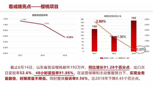 劉愛力還介紹了集團(tuán)公司自2019年初分階段啟動寄遞網(wǎng)提速工作以來,三大重點管控區(qū)域取得的階段性成果,寄遞業(yè)務(wù)時限質(zhì)量有了大幅提升。