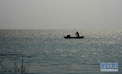 3月30日,唐真亞在洪澤湖上劃行。新華社記者 黃曉勇 攝