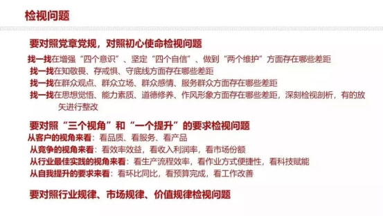 黨員干部切忌諱疾忌醫。開展這次主題教育,就是要廣大郵政黨員干部以刀刃向內的自我革命精神,廣泛聽取意見,認真檢視反思,把問題找實、把根源挖深,明確努力方向和改進措施,切實把問題解決好。能否以問題為導向,是我們干部清醒不清醒,是否擁有正確的世界觀的體現。能夠找到產生問題的原因,是管理者的智慧,是把握發展規律的體現。能夠解決問題是領導者的能力,是擔當負責的體現。