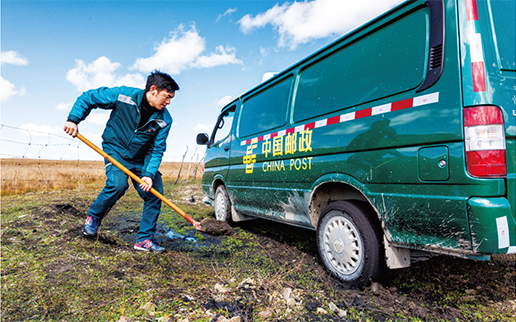 每到雨季,高原牧區(qū)坑坑洼洼的土路就變成了連片的水坑,郵車根本無法擇路而行,隨時(shí)都有可能陷進(jìn)水坑。