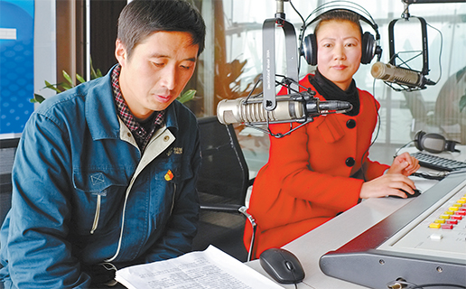 新華網(wǎng)、央廣網(wǎng)、《徐州日報》、豐縣電視臺等媒體的報道為趙本增的致富朋友圈壯大了“隊伍”。圖為豐縣廣播電臺對趙本增專訪現(xiàn)場。