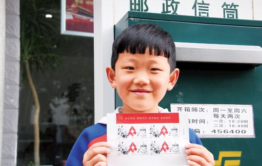 5月11日,河南省安陽(yáng)市滑縣紅旗路郵政營(yíng)業(yè)廳外,一位小郵迷成功購(gòu)得心儀的《眾志成城 抗擊疫情》郵票,興奮地展示起來(lái)。牟會(huì)鋒 攝