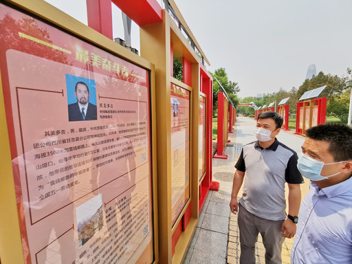 山東省濟南市泉城廣場建起的“最美奮斗者”系列展示長廊日前亮相,據了解,該展示活動由濟南市精神文明辦、濟南泉城廣場管理處聯合主辦。長廊共展示新中國成立以來全國各個時期各行各業的優秀工作者(集體)300個,其中,個人278名、集體22個,中國郵政員工其美多吉、王順友在列。圖為市民觀看了解其美多吉事跡介紹。