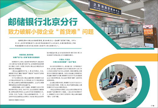 緩解民營和小微企業的融資困境,重點和難點之一是破解“首貸難”問題。今年4月1日,北京市首貸服務中心在北京市政務服務中心正式運行,為落實監管要求,中國郵政儲蓄銀行北京分行成為首批入駐該中心的大型銀行之一。