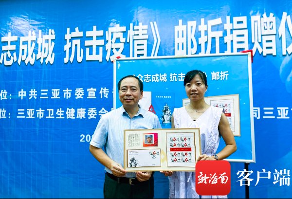 7月8日下午,由三亞市衛生健康委員會聯合中國郵政集團有限公司三亞市分公司共同舉辦的《眾志成城 抗擊疫情》郵折捐贈儀式在三亞舉行,全市434人獲贈《眾志成城 抗擊疫情》定制郵折。