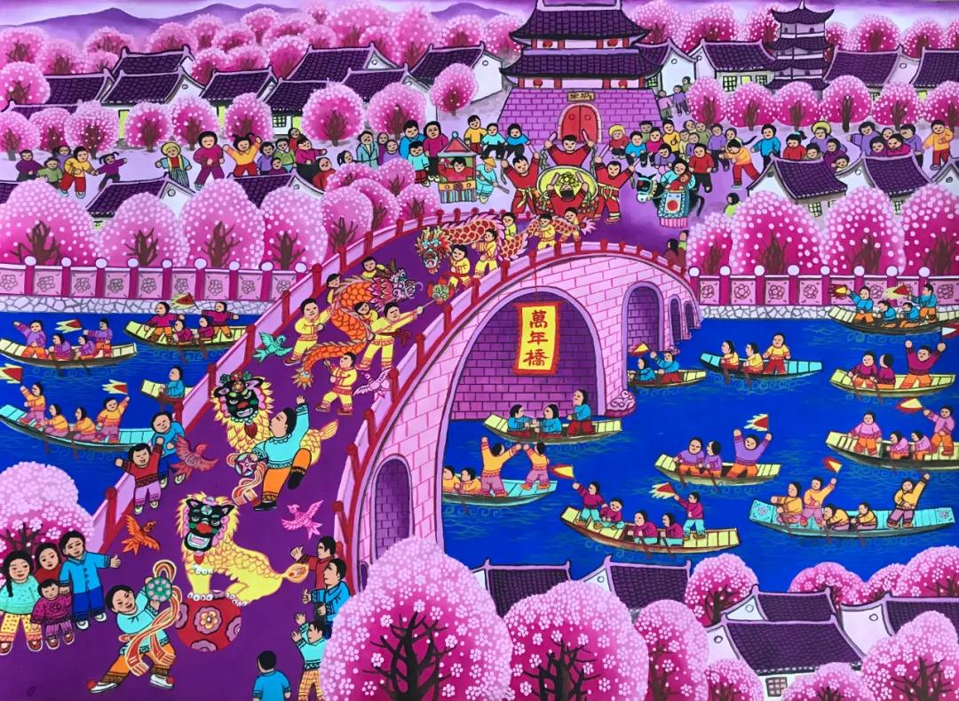 “農(nóng)民畫的靈感來(lái)自農(nóng)村生活,傳統(tǒng)農(nóng)民畫多以豐收為主題,飽含著農(nóng)民對(duì)吃飽飯的渴望;近年來(lái),畫作題材不斷豐富、內(nèi)容更加多元,不僅表現(xiàn)了對(duì)未來(lái)生活的向往,更是對(duì)當(dāng)下幸福生活的深情寫照,”青州農(nóng)民畫院院長(zhǎng)宋曉表示,農(nóng)民畫的發(fā)展史,正是中國(guó)農(nóng)村發(fā)展變化的生動(dòng)縮影。