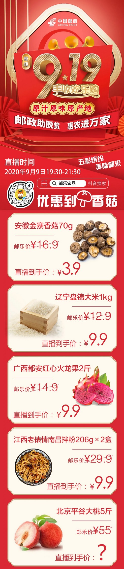 中國(guó)郵政919電商節(jié)首場(chǎng)預(yù)熱直播來啦!