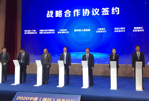 11月10日,2020 中國(濰坊)資本論壇暨地級市資本活力指數發布會在濰坊舉行,會上,郵儲銀行山東省分行與濰坊市政府簽署戰略合作協議。