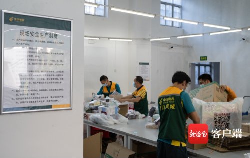 同時在每個收寄環節確保信息實時互通,離島免稅購物郵件收寄后第一時間安排消殺、打包、分揀、封發,開辟“綠色通道”優先發運、優先處理,趕發最有效、最快速的發運頻次。