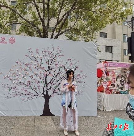 “我給弟弟寄了張櫻花明信片,希望他中考順利。”3月20日,江漢路步行街變身“櫻花一條街”,2021“花Young武漢”櫻·舞文創(chuàng)市集熱鬧登場(chǎng),引來(lái)眾多年輕人打卡購(gòu)物,給家人朋友寄櫻花明信片和櫻花快遞。