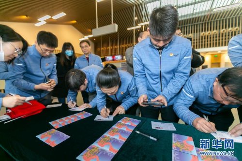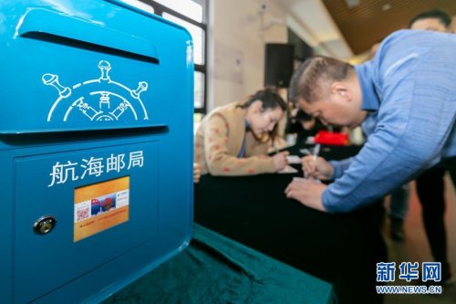3月17日,黨員代表在《海上啟航地》主題郵品上寫上祝福語。
