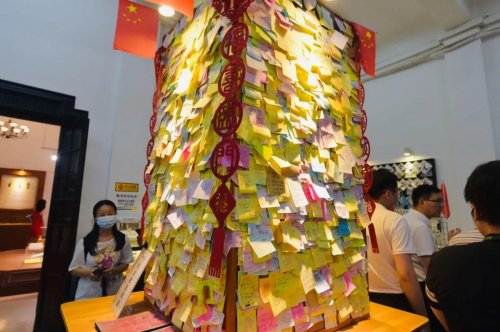 而在營業大廳左側的集郵展臺,許多緊跟潮流的地方特色個性化郵品滿足著當地市民和外地游客收藏需求。位于大廳中央的紀念戳加蓋臺上還設置了寄語展板,上面密密麻麻地貼著人們對美好生活的寄托······