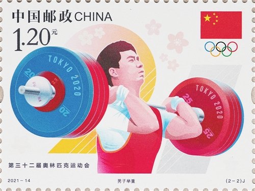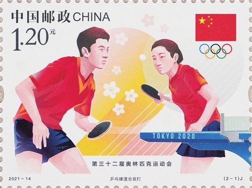 《第三十二屆奧林匹克運動會》紀念郵票分別表現了乒乓球混合雙打、男子舉重。郵票畫面展現了運動員在比賽中的精彩瞬間,藝術化地呈現了運動的拼搏與競技之美、速度與力量之美。背景中的2021采用抽象化的幾何圖形呈現,并點綴櫻花圖案,畫面虛實呼應、充滿動感,烘托出運動會熱烈的比賽氛圍。該套郵票由張強和胡曦設計,河南省郵電科技有限公司膠版工藝印制。
