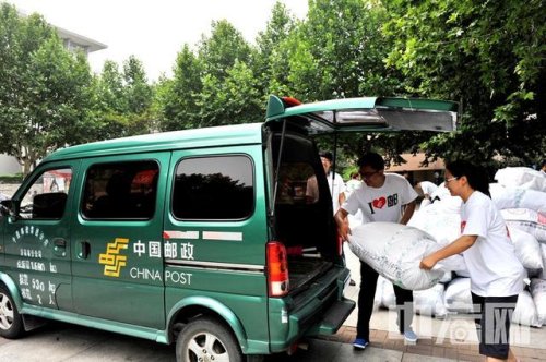 濟南大學向郵車上裝學生包裹 崔鵬森攝