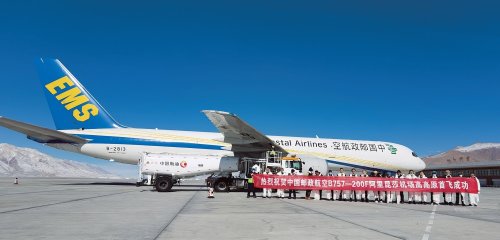 近兩年來,為推動青藏地區經濟社會發展、構建高質量發展的新郵政,中國郵政航空公司按照中國郵政集團總體部署和民航相關要求,先后完成兩架B757-200F飛機的改裝。今年5月26日和9月16日,郵航相繼成功完成“成都—拉薩”和“蘭州—格爾木”高高原機場航線實地驗證試飛。
