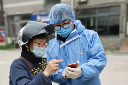 4月1日,集郵與傳媒黨支部的第一批志愿者劉衛(wèi)東和顏小娟準(zhǔn)時(shí)來到學(xué)田社區(qū)報(bào)到,恰好當(dāng)天趕上崇川區(qū)全員第二輪核酸檢測,在與社區(qū)工作人員簡單溝通情況后,兩人便迅速上崗,負(fù)責(zé)核酸采樣現(xiàn)場的秩序維護(hù)、體溫測量、采樣碼注冊(cè)等工作。