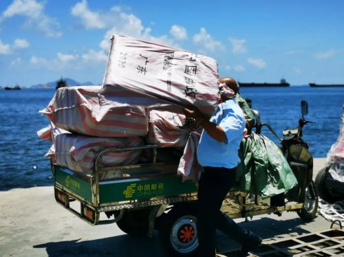 嗚嗚嗚……伴隨著汽笛的轟鳴聲,伶仃洋號貨輪漸漸駛入海港,外伶仃郵政營業所所長謝堅趕快忙完手中的工作,駕駛著電動三輪車去碼頭接收從市區運來的郵件。