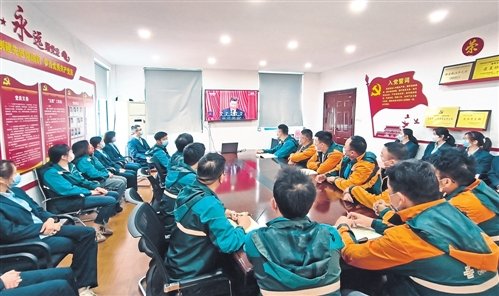 浙江省湖州市郵政分公司織里快包攬投部員工認真收看黨的二十大開幕會直播?!蹂X云杰 攝影報道