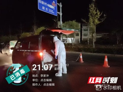21點(diǎn)10分,郵車(chē)到達(dá)邵陽(yáng)縣交接防疫卡口,邵陽(yáng)縣郵政分公司陳偉、劉澤湘兩位同志穿上密封的防護(hù)服早已等候多時(shí),他們將郵袋做了全面消殺處理,交接完成后駕駛郵車(chē)向目的地駛?cè)ァ?1點(diǎn)50分,郵件到達(dá)邵陽(yáng)縣李家沖,兩人與其家人完成面交。