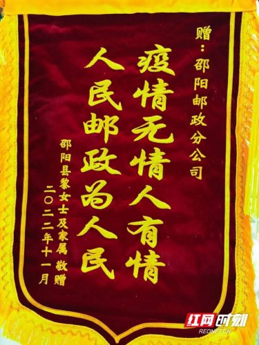 日前,湖南省邵陽(yáng)市郵政分公司收到一個(gè)特殊的包裹,里面緊裹著一面鮮紅的錦旗,上面寫(xiě)著“疫情無(wú)情人有情,人民郵政為人民”。