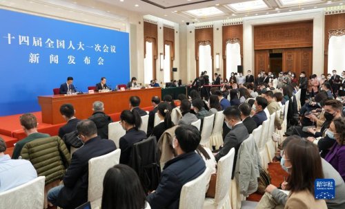 3月4日,十四屆全國人大一次會議在北京人民大會堂舉行新聞發布會。大會發言人王超就會議議程和人大有關工作回答中外記者提問。新華社記者 邢廣利 攝