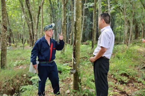 劉麗海在聊天中得知村民黎紅光有貸款的意向后,馬上將這條信息反饋給蘭洋鎮郵政支局局長劉輝。第二天一早,劉輝就趕往黎紅光家的橡膠林。