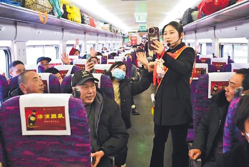 對(duì)于江蘇、上海及周邊地區(qū)的數(shù)以千計(jì)的務(wù)工人員來說,此次G9285次列車是一趟特別的列車。舒城縣郵政分公司連續(xù)第6年舉辦“春運(yùn)郵情情暖江淮”活動(dòng),聯(lián)合縣公共就業(yè)和人才服務(wù)中心、皖浦皖籍農(nóng)民工工作服務(wù)站等單位,包下一列高鐵專列,始發(fā)站為上海站,途經(jīng)昆山、蘇州、無錫,免費(fèi)帶著862名在長三角地區(qū)務(wù)工的老鄉(xiāng)直達(dá)舒城。