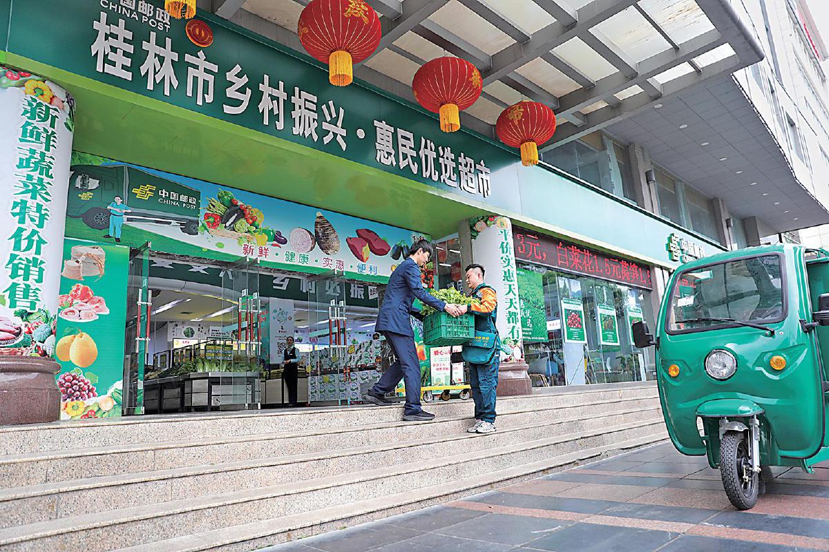 “桂林市鄉村振興·惠民優選超市是桂林市第一家點對點服務銷售本地農產品的直營店。從田間地頭采摘蔬菜、水果后,通過郵政直接運輸到超市,無中間商賺差價。既滿足了城市客戶對新鮮果蔬的需求,也為桂林市推動消費幫扶、助力鄉村振興工作開啟了新模式?!焙献鞴步▎挝弧⒐鹆质朽l村振興局副局長鄧巖松介紹說。