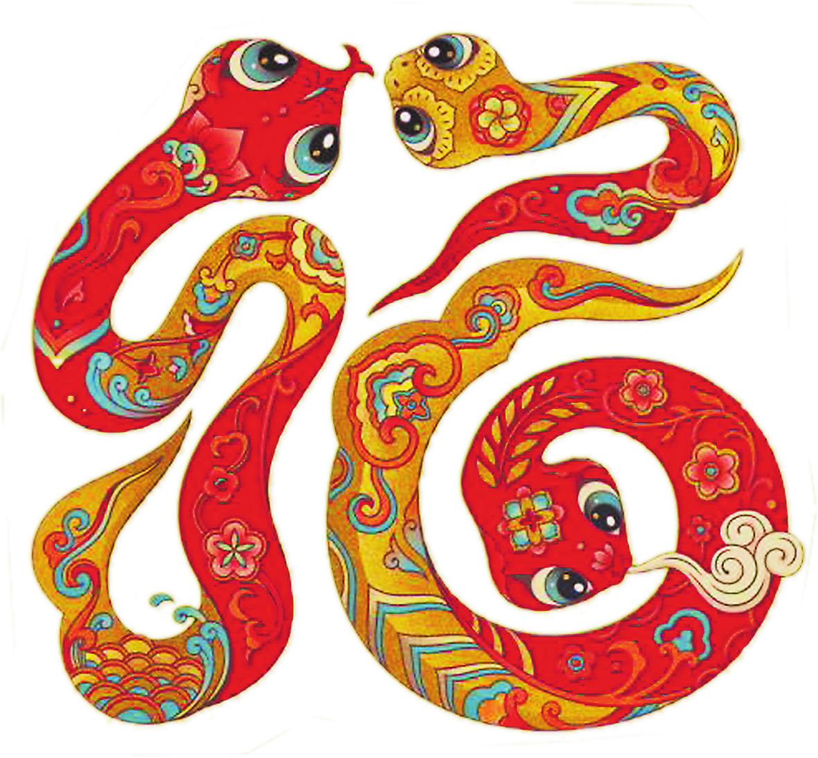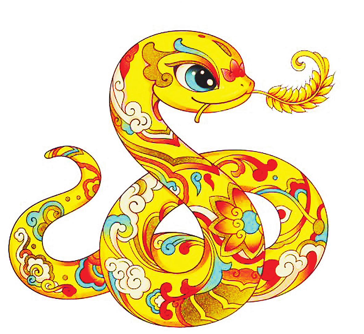 在生肖動物里,蛇的設計難度是比較大的。蛇的形象具有兩面性,它有著吉祥的象征寓意,外形卻又容易讓人產生畏懼感。那么,如何讓設計的蛇的形象能夠被大眾接受,是我這次創作面臨的主要挑戰。我希望塑造的蛇是對人親近的,是活潑可愛、圓潤豐滿的,所以就通過靈動的線條和姿態來表現其造型,在畫面上實現傳統與現代審美之間的平衡。