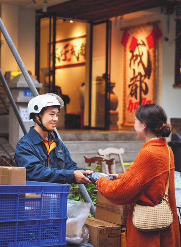 10:30,劉孜力將郵件投遞給寬窄巷子的客戶葉小姐。