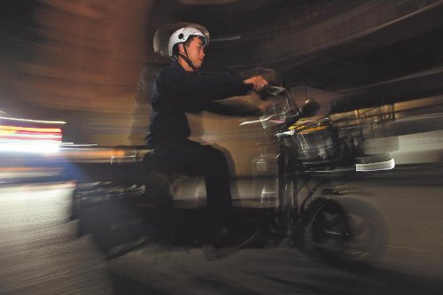 上午9點,一輛輛滿載郵件的電動車陸陸續(xù)續(xù)從攬投部駛出,每輛電動車的尾部都嵌有方形塑膠箱子。為了提高投遞效率,劉孜力和伙伴們放棄了裝載量更大的三輪車,利用“瘦身”的電動車多次快速穿梭在人流擁擠的大街小巷,盡管每次只能運載五六十件郵件。