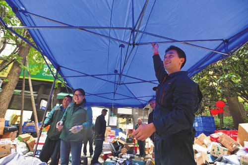 8:10,天空下起小雨,劉孜力和同事及時搭起帳篷。