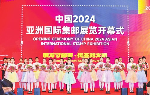 中國福利會少年宮小伙伴藝術團在亞郵展開幕式上表演開場節目《永遠在一起》。□郭尤 攝