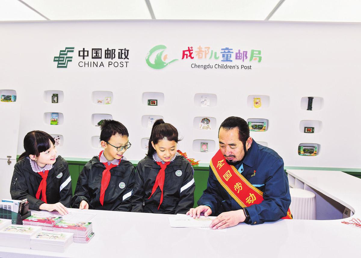 10月25日,全國首家兒童郵局——成都兒童郵局在成都市草堂小學正式啟用。該郵局由成都市郵政分公司、成都市青羊區委社會工作部、青羊區總工會、青羊區婦女聯合會、青羊區教育局共同創辦。郵局內打造了勞動教育博物館、郵政文化博物館、家書家風博物館,旨在通過郵局大力弘揚勞模精神、勞動精神、工匠精神。成都兒童郵局將發揮郵政特色功能,發布“民聲”專用郵簡、“童聲”專用明信片,暢通市民意見收集的渠道。當天,成都兒童郵局向時代楷模、全國勞動模范、四川省甘孜縣郵政分公司長途郵車駕駛員其美多吉頒發了“名譽局長”工牌。