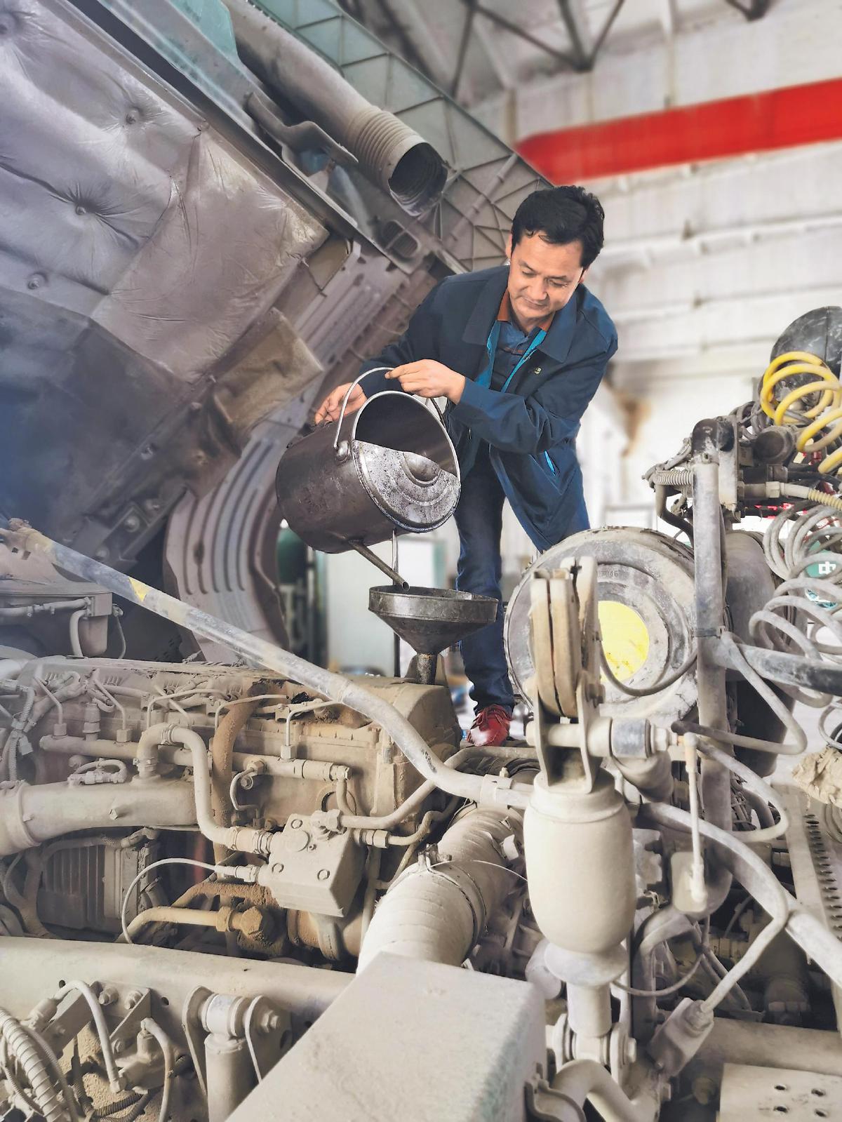 常年奮戰(zhàn)在郵政運(yùn)輸戰(zhàn)線,喬毅軍練就了過(guò)硬的業(yè)務(wù)技能。安全行駛190余萬(wàn)公里無(wú)事故的背后,是他對(duì)安全的極致追求和對(duì)工作的無(wú)限熱愛。喬毅軍在郵路上要應(yīng)對(duì)各種極端復(fù)雜的天氣,冬季低溫、冰雪等會(huì)對(duì)車輛性能帶來(lái)很大影響,只有通過(guò)細(xì)致的檢查,才能及時(shí)發(fā)現(xiàn)潛在風(fēng)險(xiǎn),從而避免在行駛過(guò)程中出現(xiàn)車輛故障或可能導(dǎo)致的事故。檢查不僅包括常見的輪胎、燈光、剎車系統(tǒng)等基本項(xiàng)目,還需要特別檢查皮帶緊張度、方向盤游動(dòng)間隙、制動(dòng)系統(tǒng)工況等。“行車時(shí)要注意力集中,防止發(fā)生意外,避免不必要的損失。對(duì)汽車日常檢修項(xiàng)目要做好登記,對(duì)近期汽車出現(xiàn)的故障進(jìn)行綜合分析,認(rèn)真查找造成故障的原因,分析故障隱患出現(xiàn)的趨勢(shì),提前預(yù)防,及時(shí)做好維護(hù)保養(yǎng)工作,避免汽車在行駛途中突發(fā)故障。”正是這樣一絲不茍的工作態(tài)度成就了喬毅軍的優(yōu)秀業(yè)績(jī),他說(shuō):“郵車就是自己的另一個(gè)伙伴,只有細(xì)心照料和體貼入微的關(guān)愛,它才不會(huì)把人扔在路上。”
