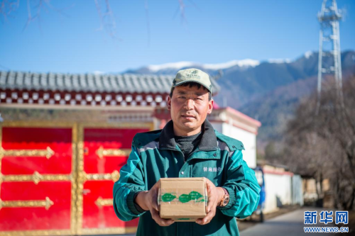 1月19日,西藏林芝市巴宜區(qū)林芝鎮(zhèn)尼池村村民扎西次仁簽收快遞。