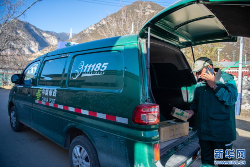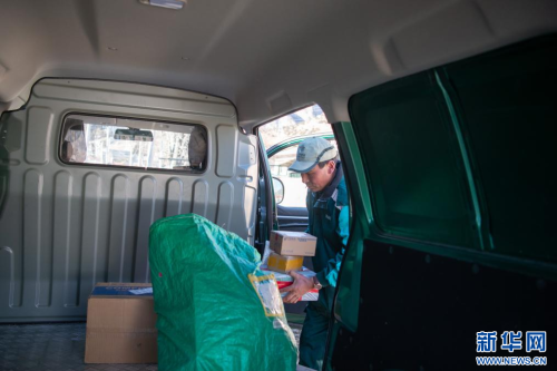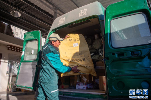 1月19日,在林芝鎮(zhèn)郵政所,郵遞員索朗次仁把準(zhǔn)備派送的快遞裝車。