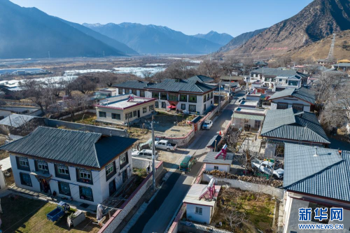 1月19日,西藏林芝市“郵快合作”新配備的郵遞車穿行在鄉(xiāng)村小巷。