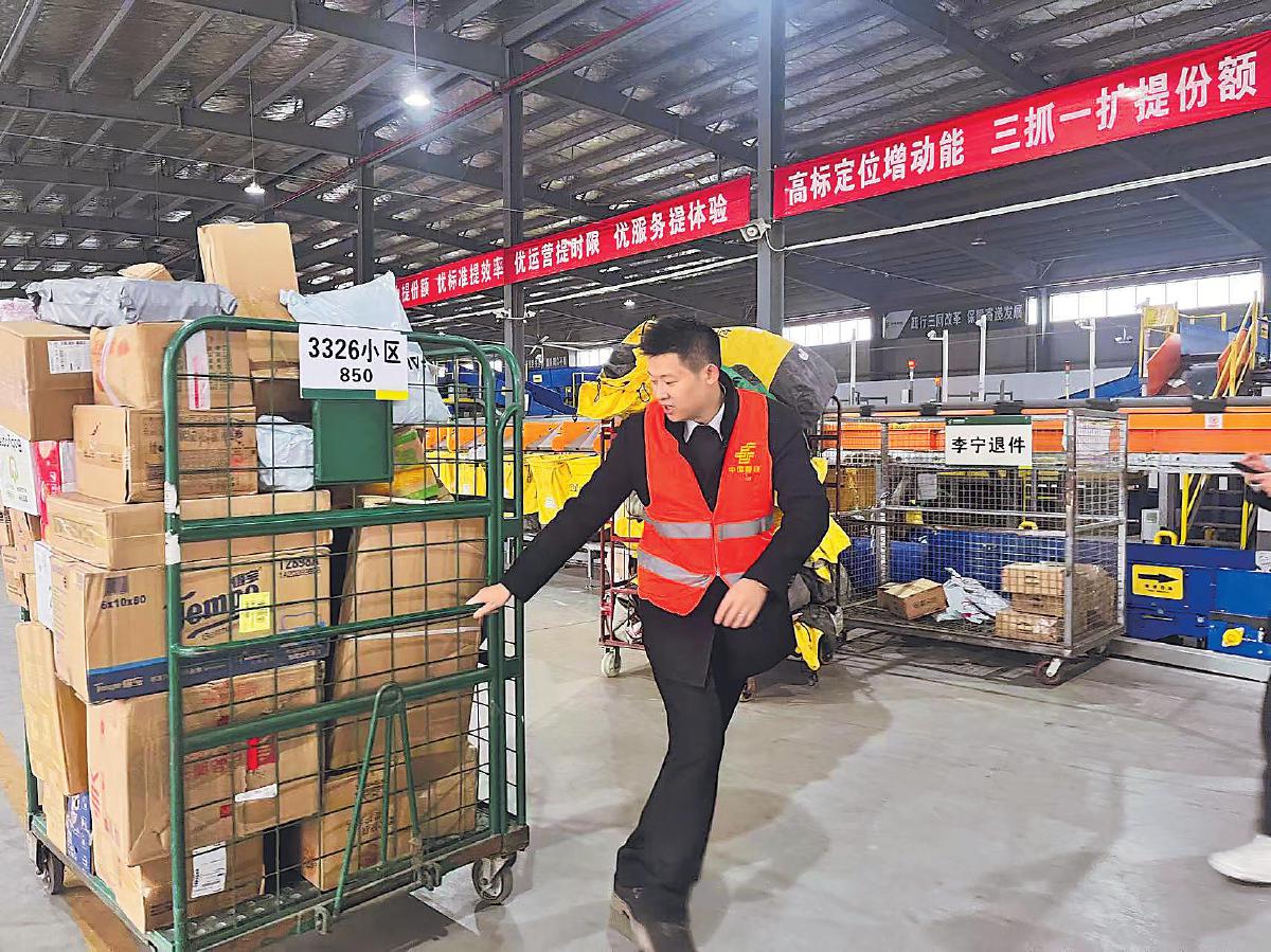 春節期間,湖北省荊門市郵政分公司郵件處理量遠超往年。該分公司黨委迅速行動,根據郵件處理現場和攬投部實際生產需求,緊急集結黨員和青年力量,成立黨員幫扶突擊隊,協助完成裝車、卸車、供包等工作。在大家的共同努力下,郵件處理各環節有條不紊,始終保持著平穩、高效、有序的生產作業秩序。