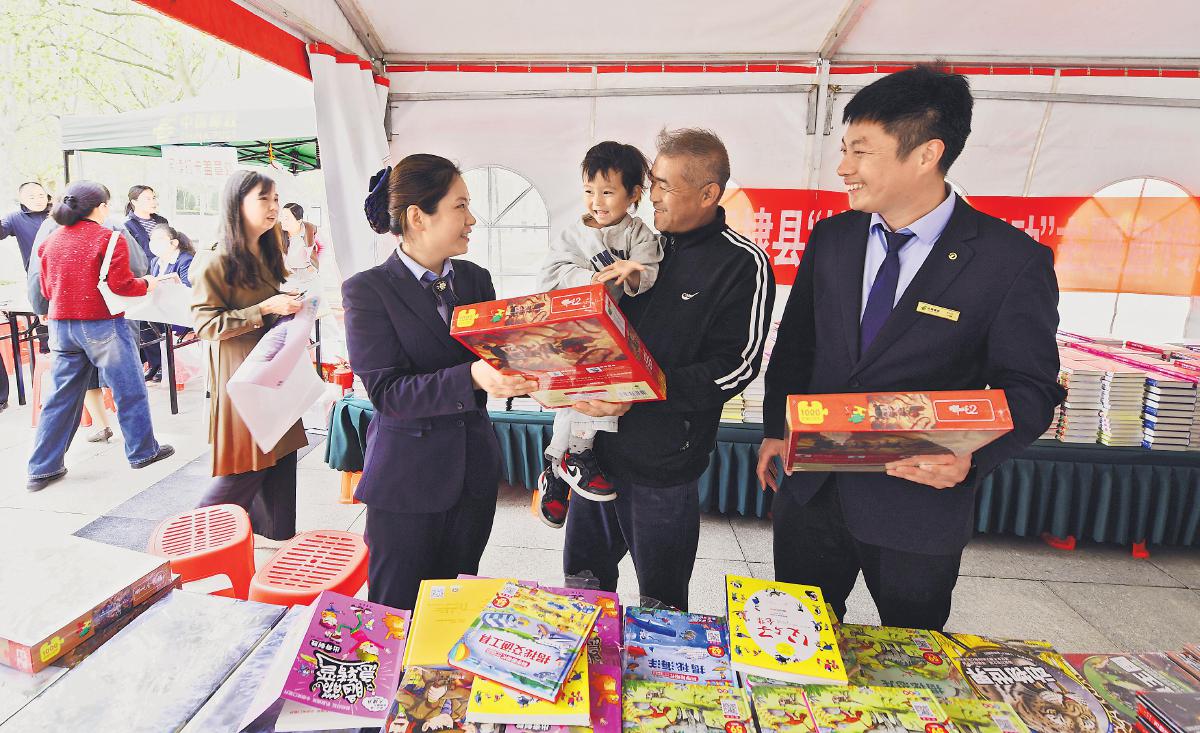 4月18日,“書香古邑·品質無棣”全民閱讀季暨“玫瑰書香飄四季”閱讀活動在山東省無棣縣新區廣場舉行。無棣縣郵政分公司向6所學校各捐贈了價值2000元的圖書,向勞動模范、先進教師等15名代表分別捐贈價值200元的圖書。□張同勇 攝影報道