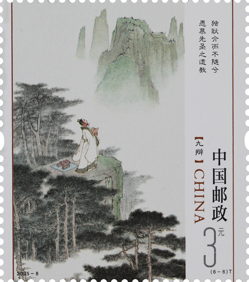 中國郵政定于2025年5月31日發(fā)行《楚辭》特種郵票1套6枚。詳情如下: