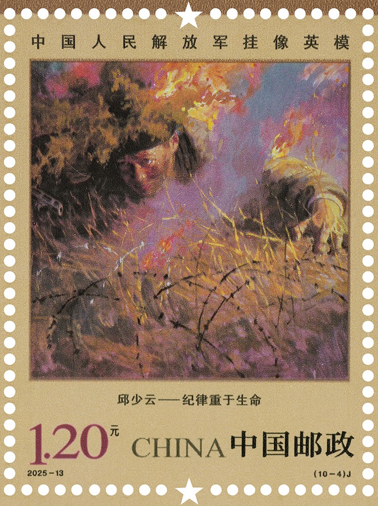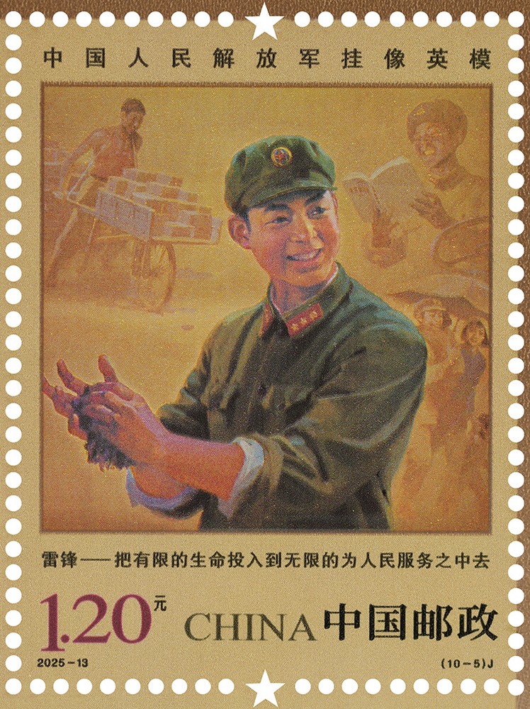 中國(guó)郵政定于2025年8月1日發(fā)行《中國(guó)人民解放軍掛像英?!芳o(jì)念郵票1套10枚,郵票圖案名稱為:張思德、董存瑞、黃繼光、邱少云、雷鋒、蘇寧、李向群、楊業(yè)功、林俊德、張超。全套郵票面值12元,計(jì)劃發(fā)行數(shù)量450萬套。